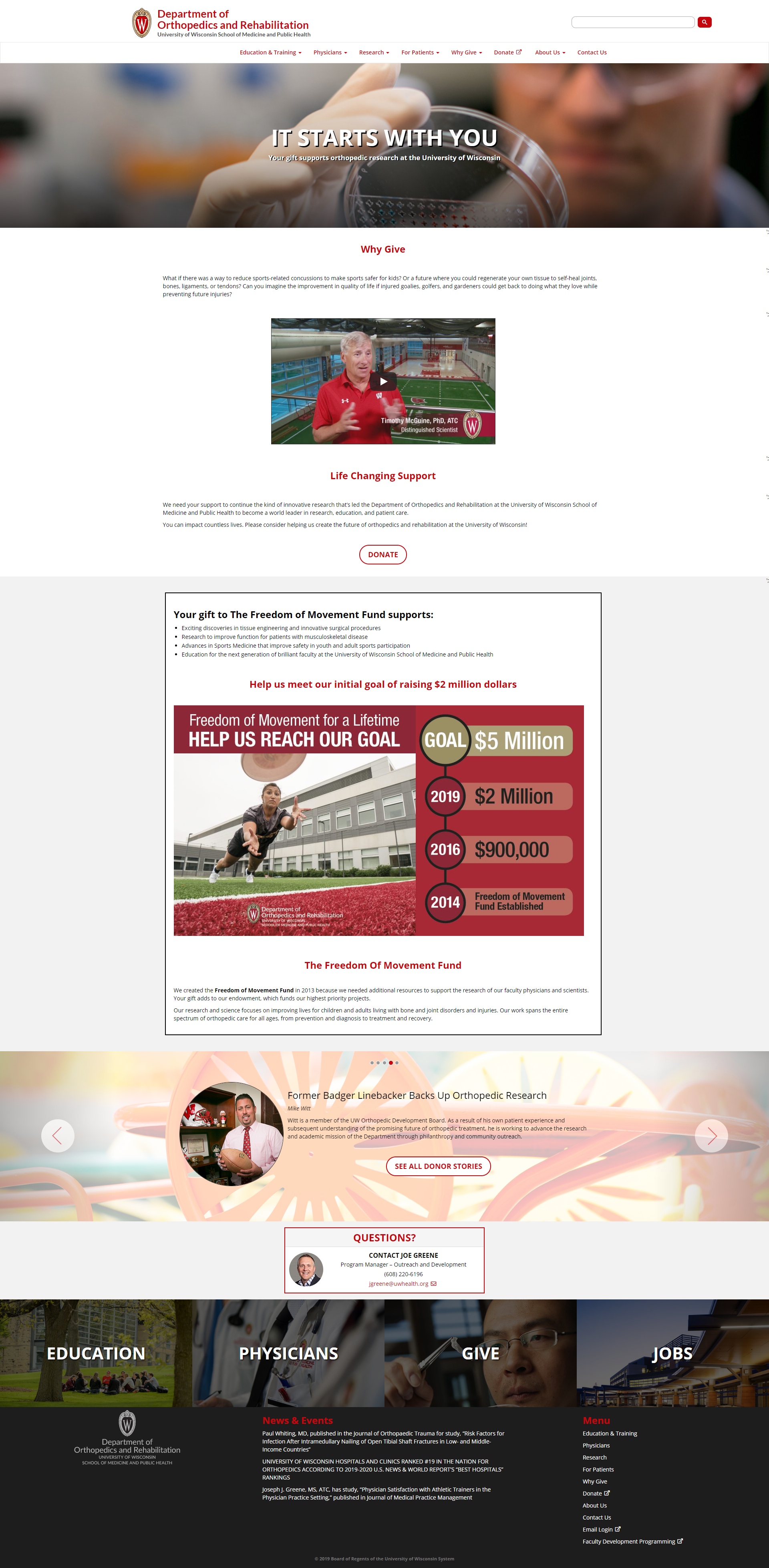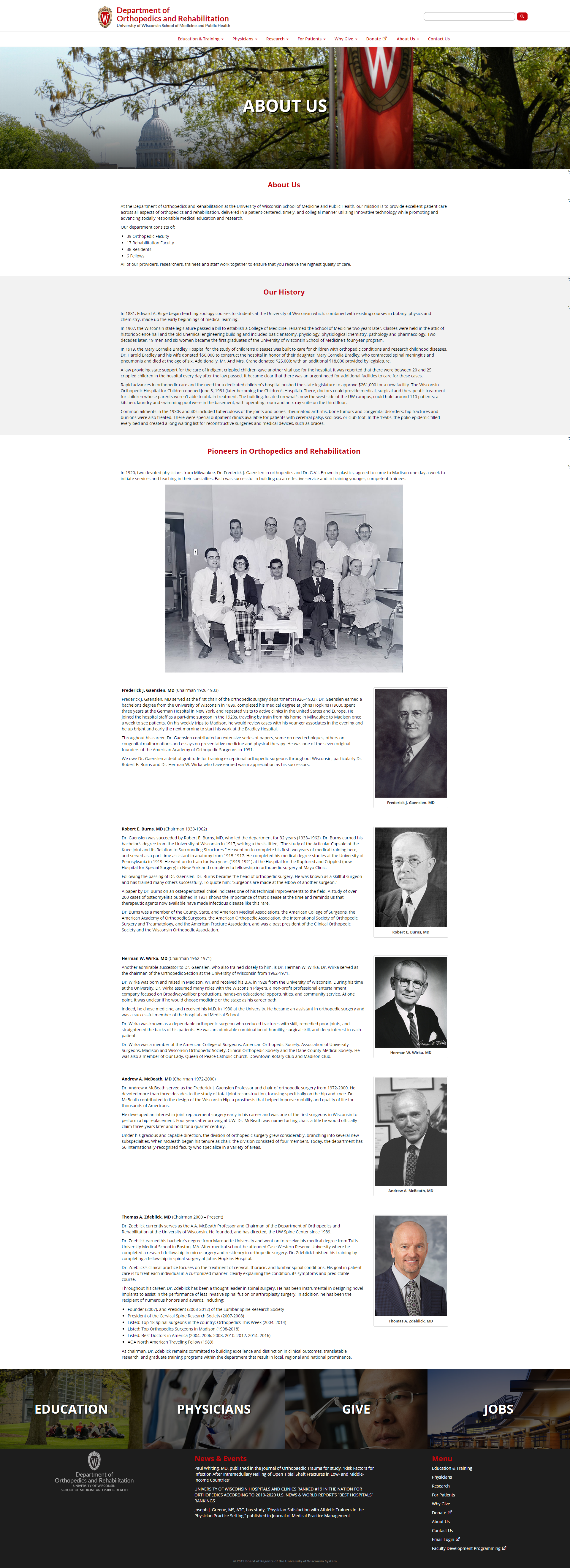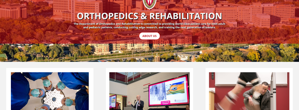 Website redesign for The Department of Orthopedics and Rehabilitation at the University of Wisconsin, 2017-2018